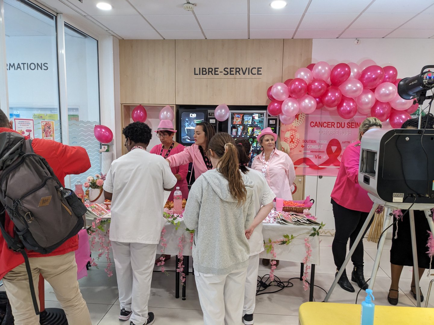 Le stand d'information installé à proximité de la cafétéria de l'hôpital,a accueilli tout au long de la journée patients, accompagnants, visiteurs et professionnels de l'hôpital. L'objectif était clair : rappeler à tous que le cancer du sein reste le premier cancer féminin en France avec près de 60 000 nouveaux cas par an, mais qu'il est aussi l'un des plus guérissables quand il est détecté tôt. Neuf cancers sur dix sont guérissables s'ils sont pris en charge précocement.